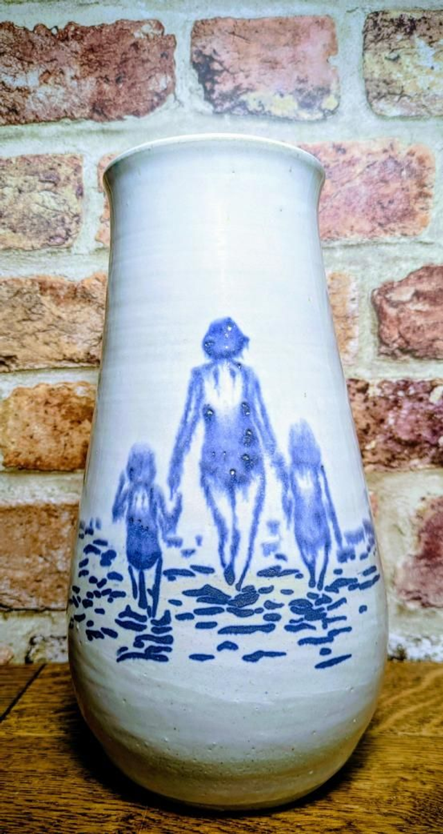 Made by Lillemor Latham at The Crafty Guillemot, based on the Isle of Anglesey (Ynys Món). This beautiful handmade stoneware vase is decorated with a family of wild-swimmers. Glazed inside and out, this vase is the perfect vessel for both your dried or fresh flowers. Lille creates small batches of wheel-thrown stoneware ceramics, with inspiration taken from the impressive natural landscapes of the coast of Ynys Môn and the mountains of Eryri.