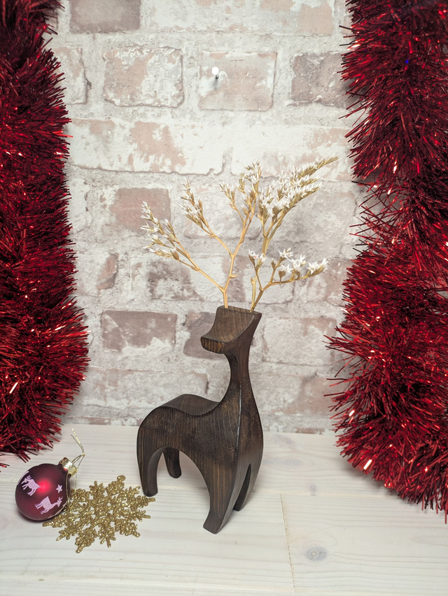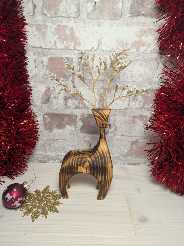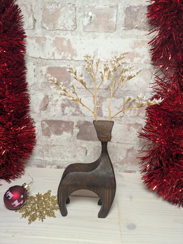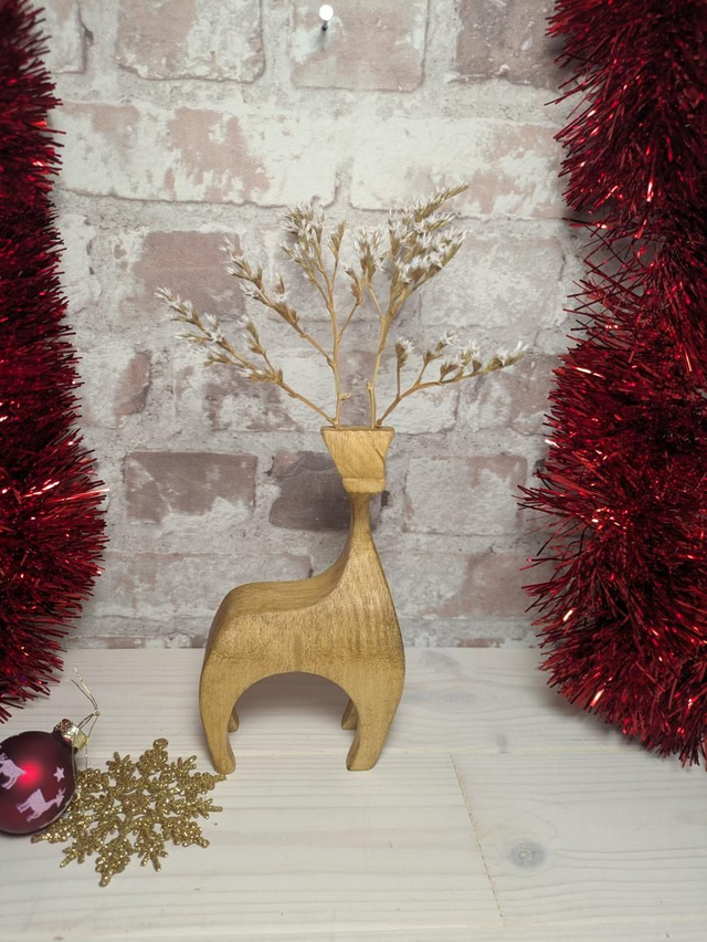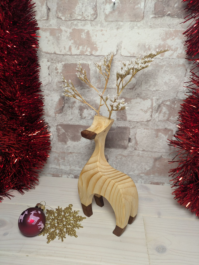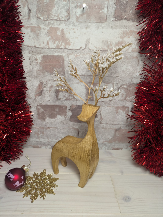Bring a touch of woodland magic to your home with these beautifully handcrafted wooden reindeer. Each reindeer is individually made in North Wales by Rob at Herbariwm from solid timber, ensuring every reindeer has its own unique grain patterns, character, and personality. Carefully shaped, sanded, and finished by hand, this reindeer makes a timeless decoration for mantelpieces, shelves, tabletops, or as part of a festive centrepiece. These reindeer have had their wooden antlers replaced by locally grown and dried white sea lavender for a more rustic look inspired by nature.